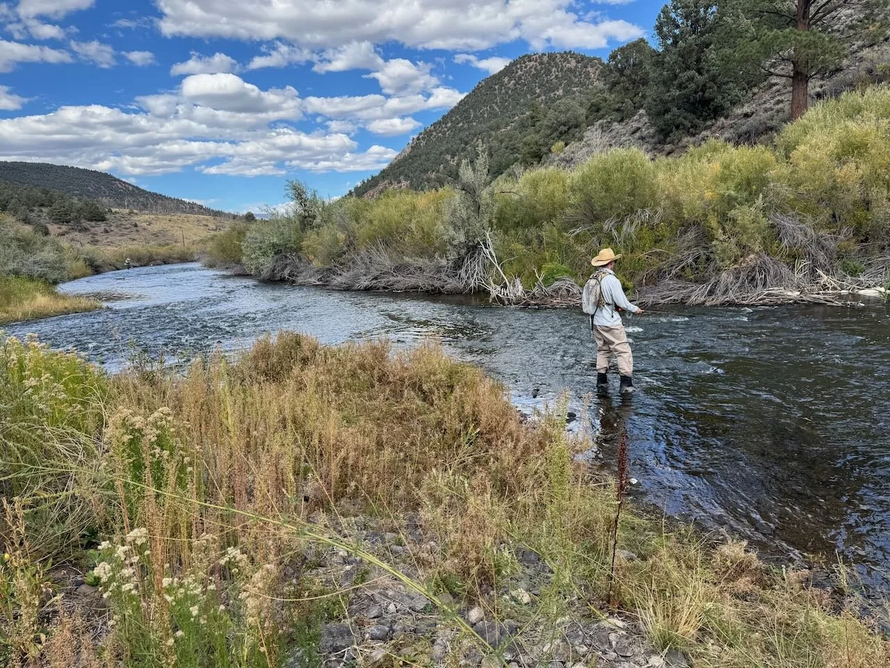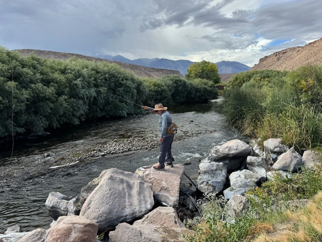 Don Sabatino from Riverside Euro nymphing on a Tenkara rod on the lower Owens River below Pleasant Valley Campground.