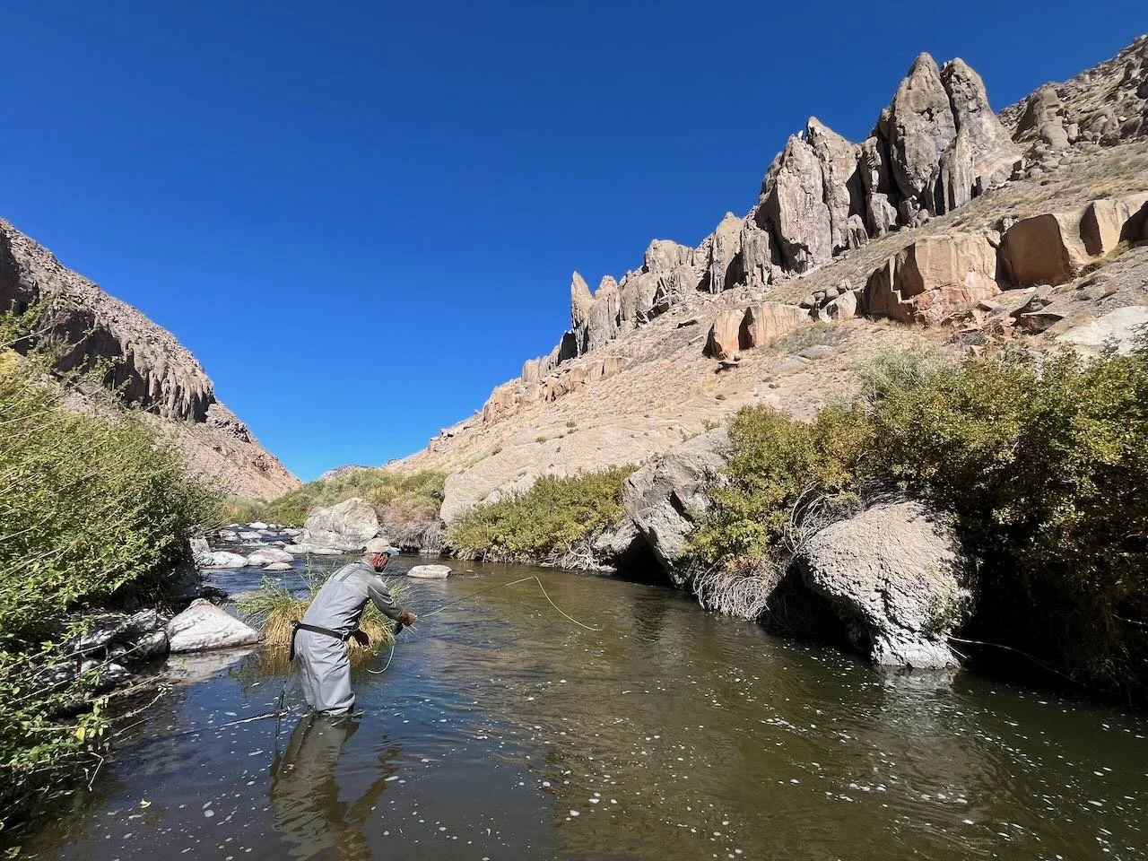 Wading and fishing with a dry and dropper rig is the way to fly fish in the Owens River Gorge.