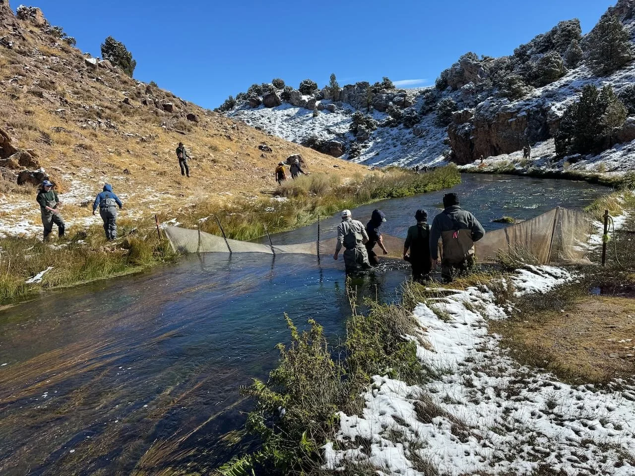 Setting up the block net before electroshocking the upper section of Hot Creek Canyon on Wednesday October 15, 2025.