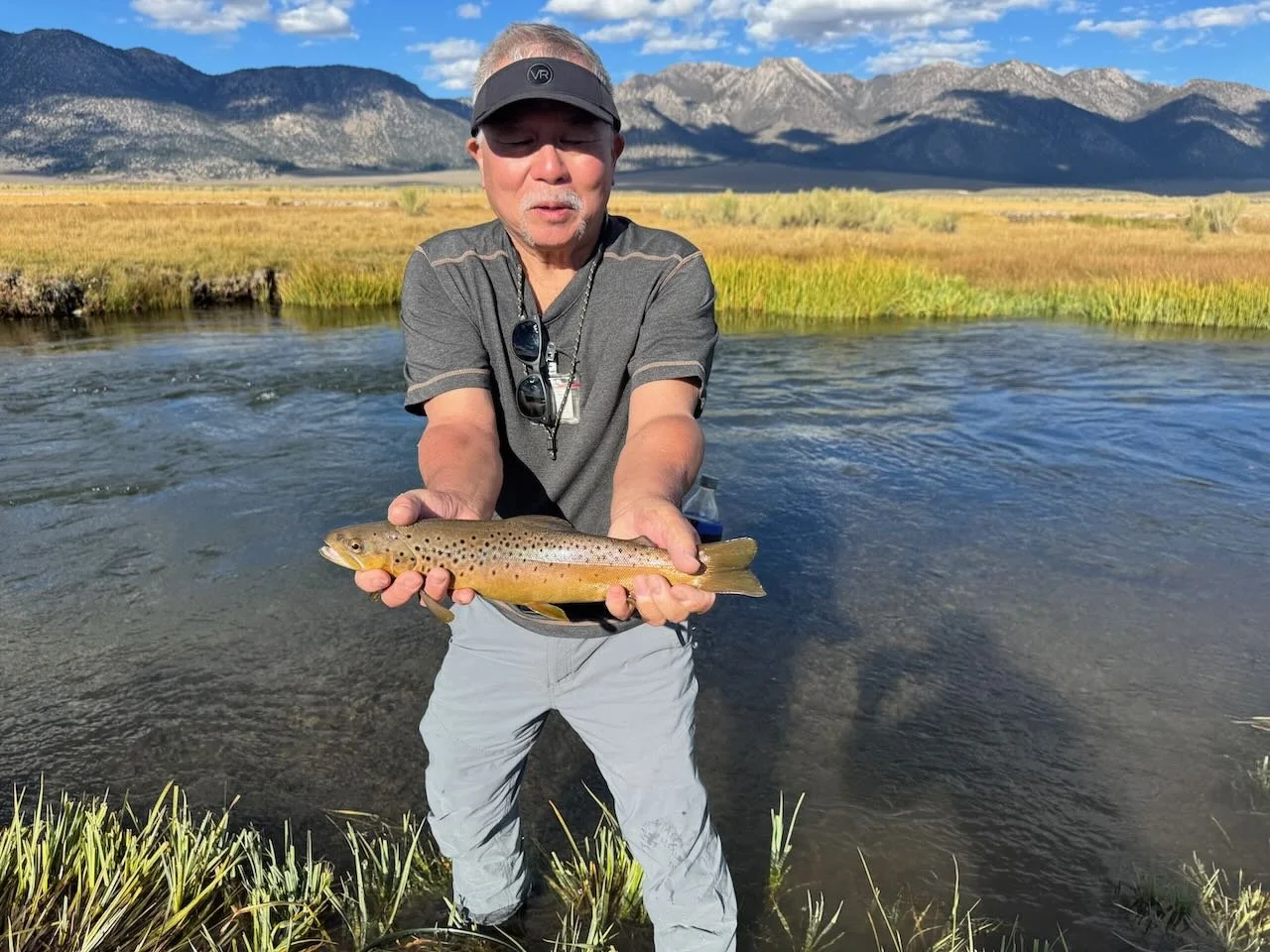 Bruce Kuroyama worked hard learning how to work a Euro rig in the upper Owens River and it paid off with this wild brown trout.
