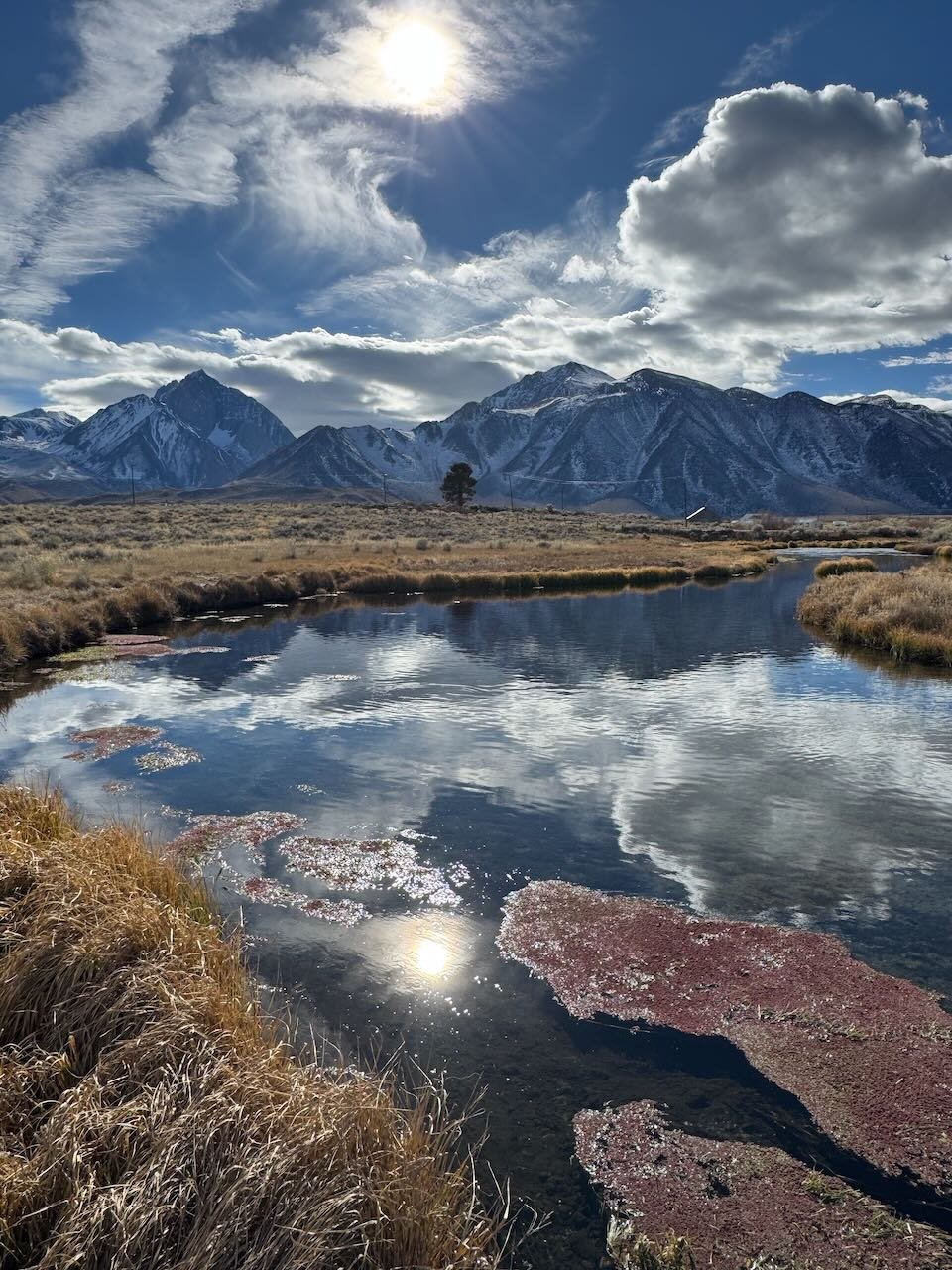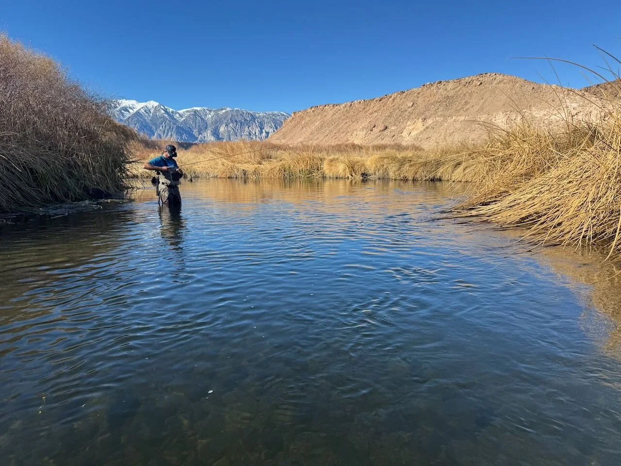 Looks like the nice warm weather is about to come to an end. Next week could see some snow on Hot Creek. Too soon to say for sure what weather to expect. Mid-morning midge and mayfly hatches have the trout feeding on the surface. Fish with a size 20 CDC midge, size 20 Griffith’s gnats, size 20 Adams parachute and size 20 blue wing olive parachute to fool the surface feeding trout. Nymphing with size 12 stoner nymphs, size 18 olive quilldigons, size 18 Frenchie’s, size 18 bead head flash back pheasant tail nymphs, size 20 tiger midges, size 20 zebra midges and size 18 green/gold brassies is fooling the wild rainbow trout, brown trout and Owens River suckers.