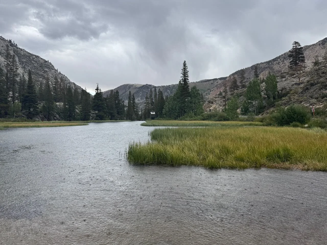 Afternoon showers are cooling off the waters of the Eastern Sierra and terrestrial insects are being washed into the creeks and lakes where the trout are feeding on the extra food.