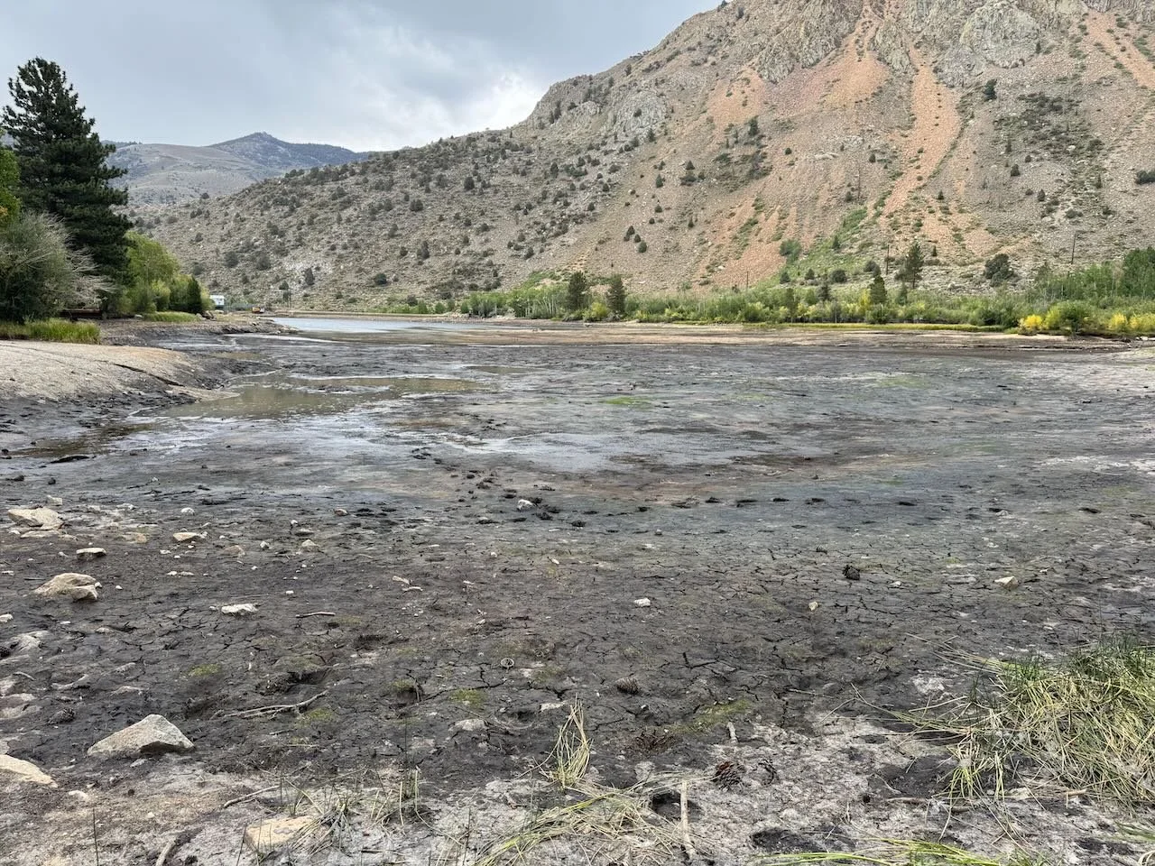 Southern California Edison has dewatered Intake Two due to repair work on the spill way embankment. This is a great time to observe the Lake and see the topography of the lake without water on the substrate. Take photos so when Intake Two has water again you will know where to fly fish and what the substrate looks like.