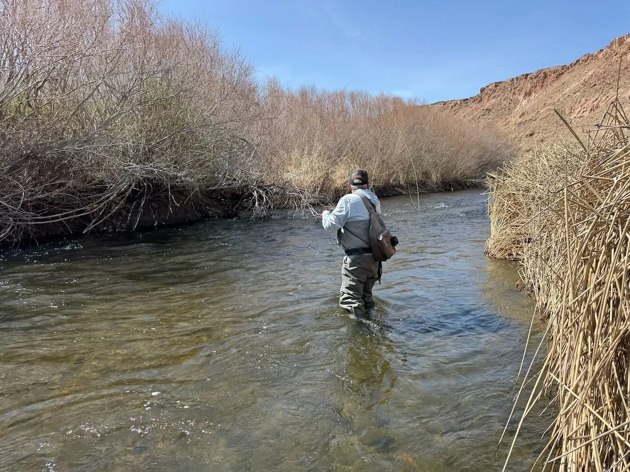 Wading the river is the only way to present flies in those sections of the river with riparian vegetation is blocking access to the banks.