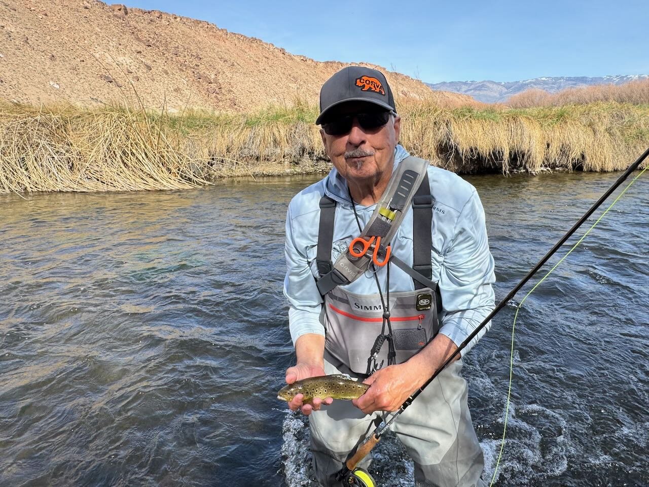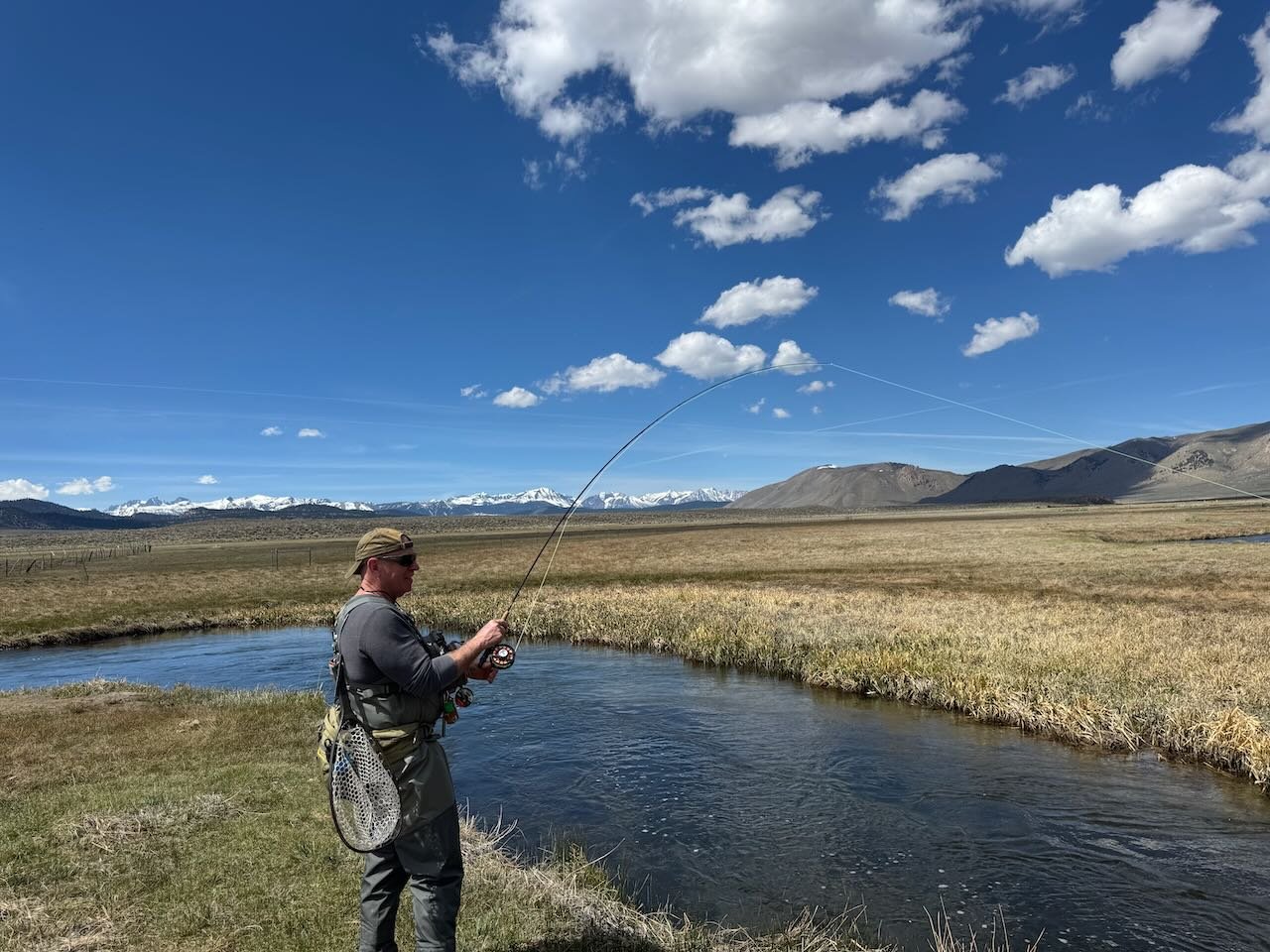 Doug hooked up to an upper Owens River rainbow that took a Hornberg he tied over 30 years ago on the suggestion of Bob Slamal from Riverside Ski and Sport.