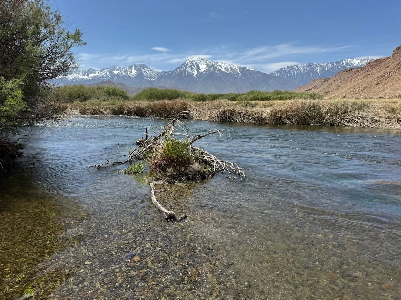 As daylight increases, the temperatures increase, plants turn green and the snow begins to recede from the mountain tops it is the start of spring time fly fishing in the Eastern Sierra.