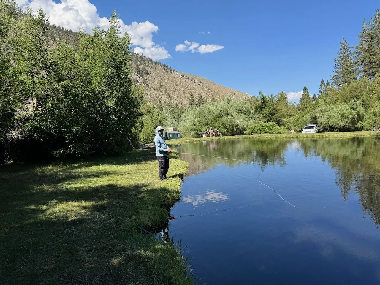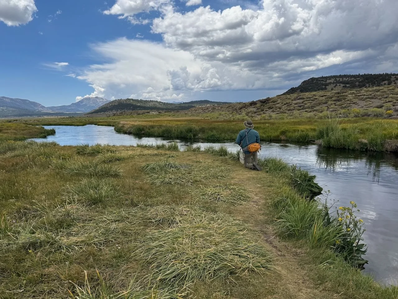 Walking the banks of Bishop Creek through the vegetation and seeing a pool that allows an overhead cast with a dry and dropper rig is the essence of fishing the creek.